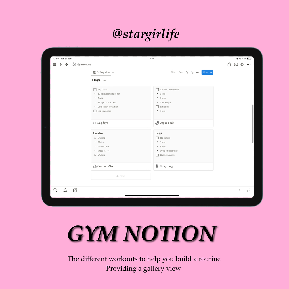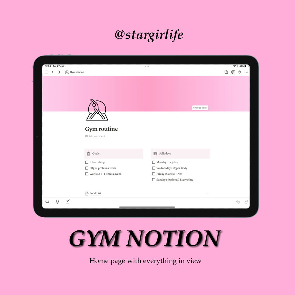 Want to make your Gym workout THAT MUCH easier. This aesthetic and customisable notion template will help you, not only keep track of your different workouts, but also includes my own personal meal plan for any beginners along with my routine.