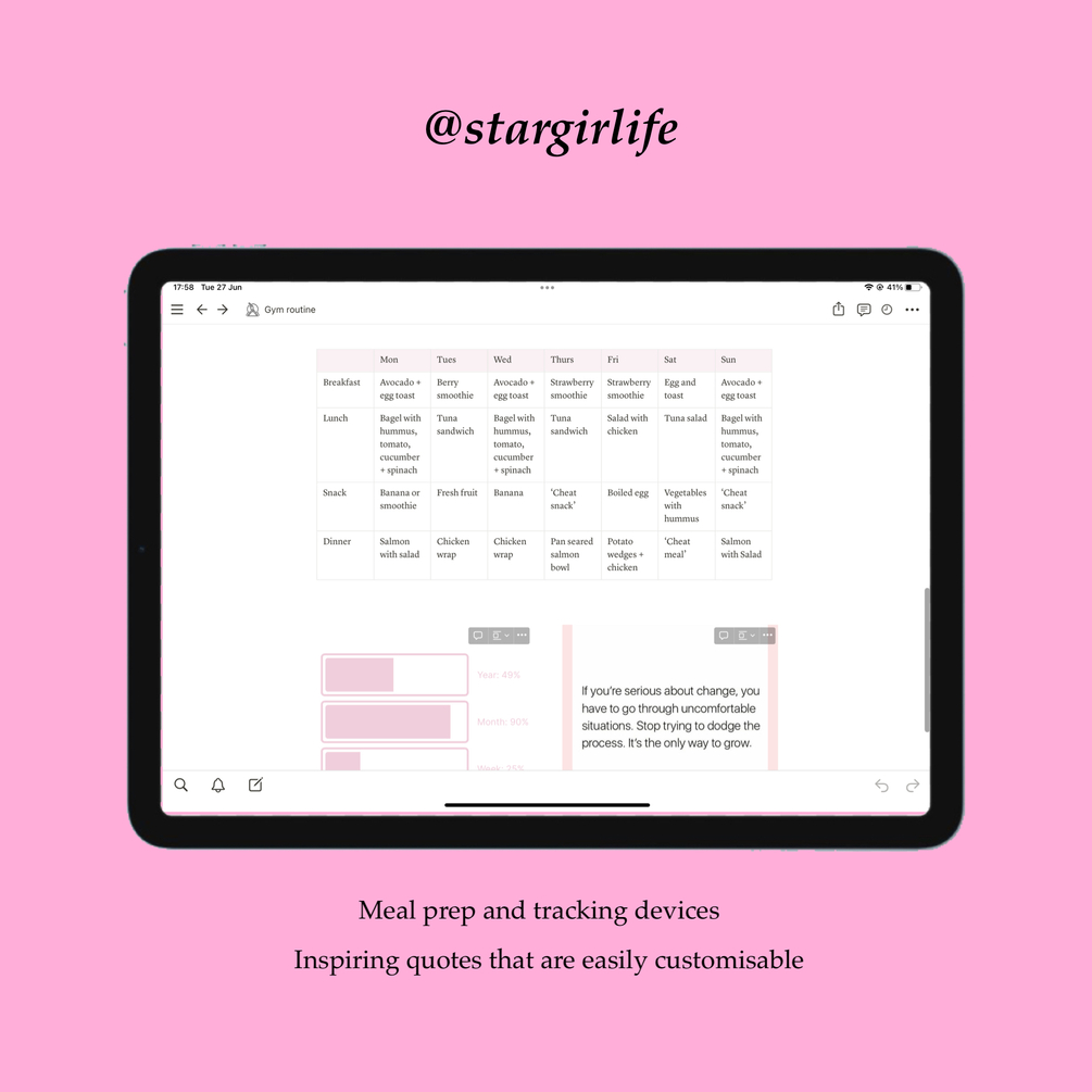 Want to make your Gym workout THAT MUCH easier. This aesthetic and customisable notion template will help you, not only keep track of your different workouts, but also includes my own personal meal plan for any beginners along with my routine.
